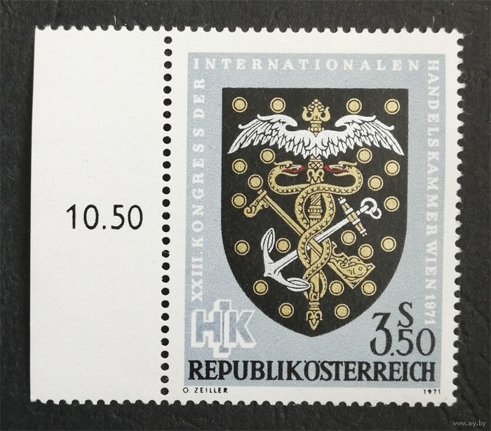 Австрия 1971 г. 23-я конференция Международной торговой палаты в Вене, полная серия из 1 марки. Чистая #0124-Ч1P4