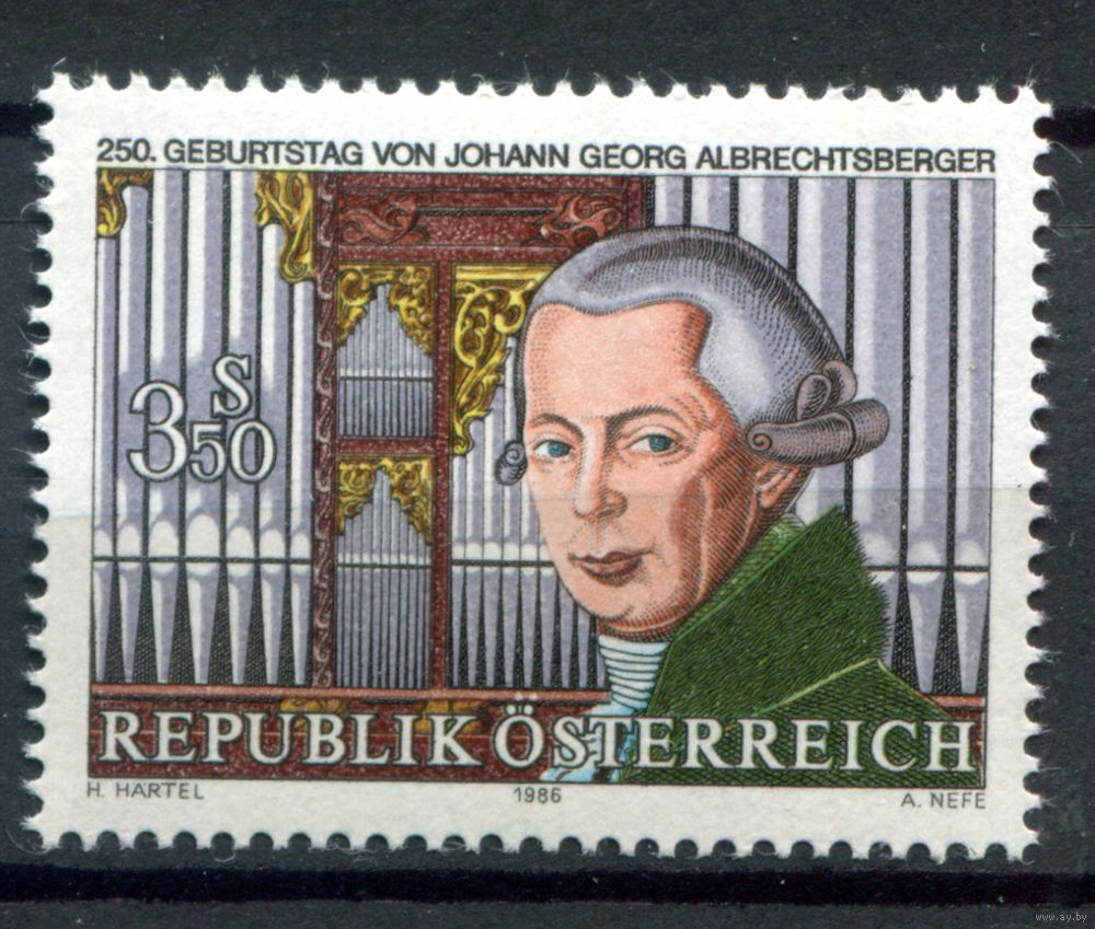 ![Австрия - 1986г. - 250 лет со дня рождения Иоганна Георга Альбрехтсбергера - 1 марка - полная серия, MNH [Mi 1839]. #3-WB-Z-1-28](https://s3-lot.aystatic.by/550x510/254/924/5039/5039924254_0.jpg)