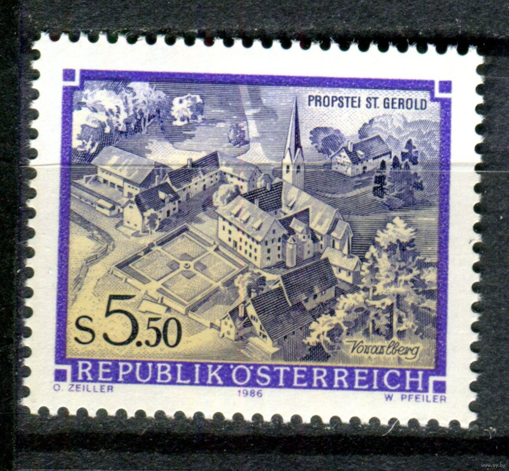 Австрия - 1986г. - архитектура, приорат в Санкт-Герольде - 1 марка - полная серия, MNH [Mi 1859]. #3-WB-Z-1-22