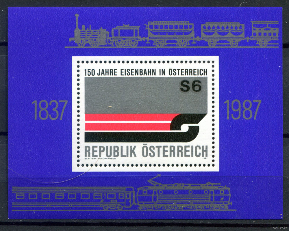 Австрия - 1987г. - 150 лет железным дорогам Австрии - 1 блок - полная серия, MNH [Mi bl. 9]. #3-WB-Z-2-34