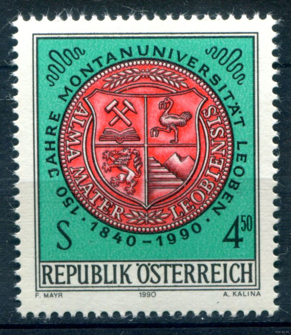 Австрия - 1990г. - 150 лет университету горного дела, металлургии и материаловедения - 1 марка - полная серия, MNH [Mi 2007]. #3-WB-Z-1-29