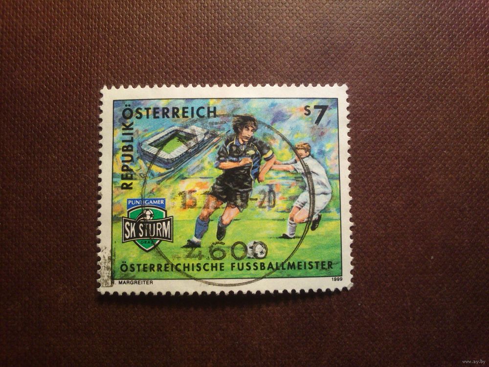 Австрия 1999 г.Чемпионы Австрии по футболу.Футбольный клуб "Штурм"из Граца.Гашеная .Used.