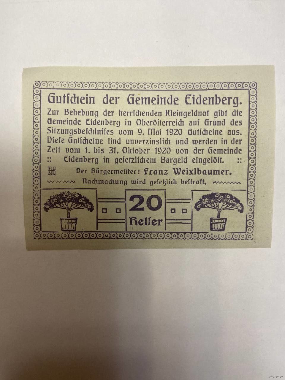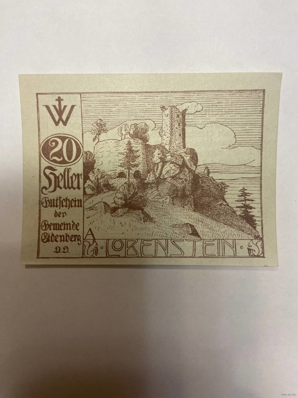 Австрия 20 геллеров нотгельд Эйденберг - 2101