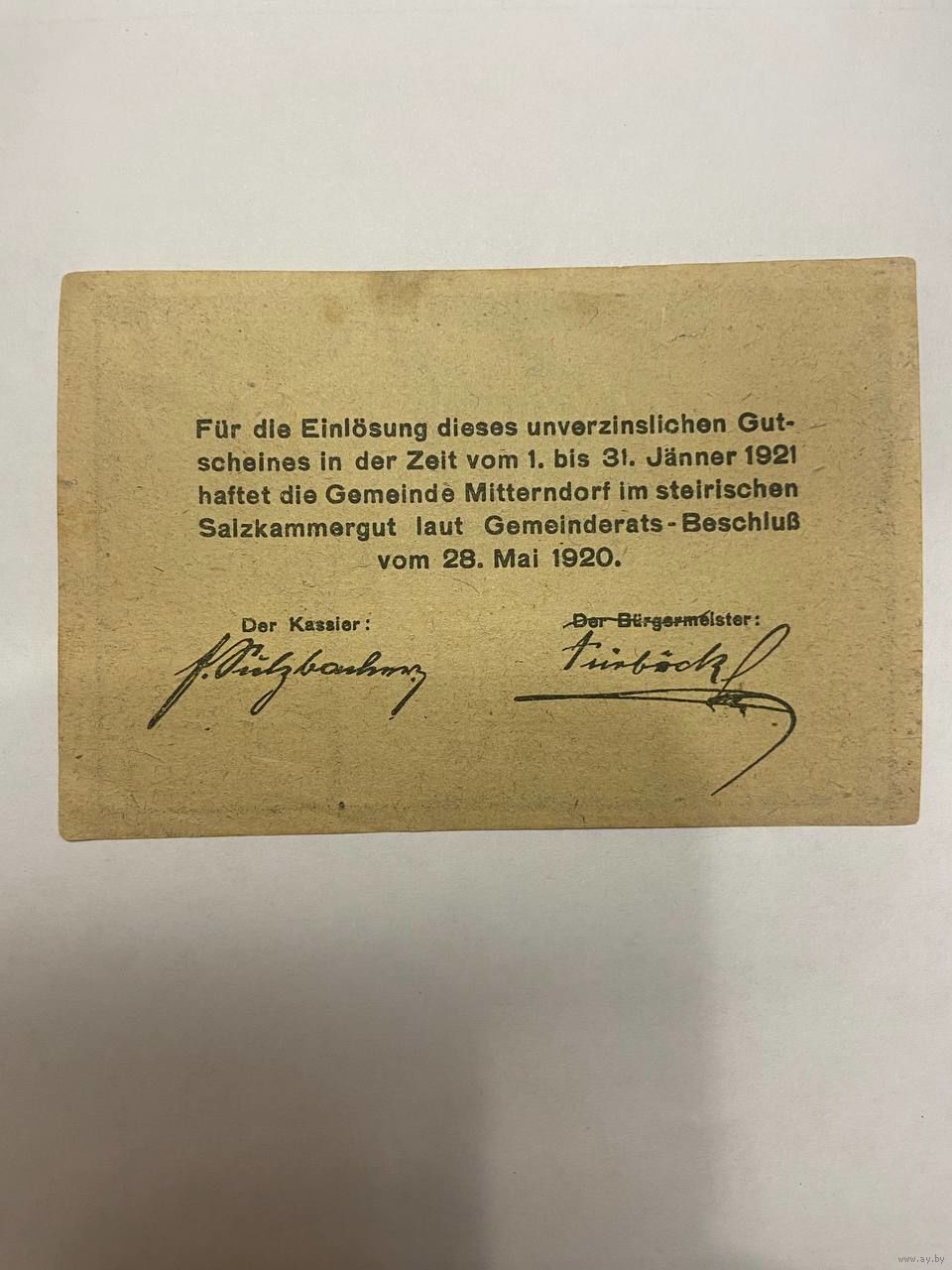 Австрия 20 геллеров нотгельд Миттерндорф - 2101