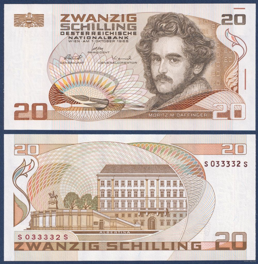 Австрия, 20 шиллингов 1986 г., P-148 (S, художник Мориц Михаэль Даффингер), UNC