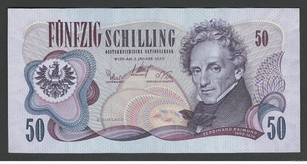 Австрия 50 шиллингов 1970 года. 2 AUFLAGE. Тип Р-144. Состояние XF+