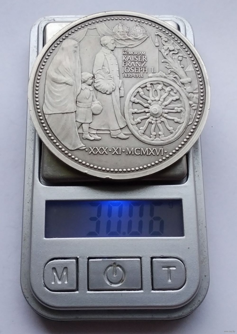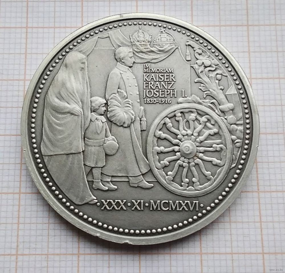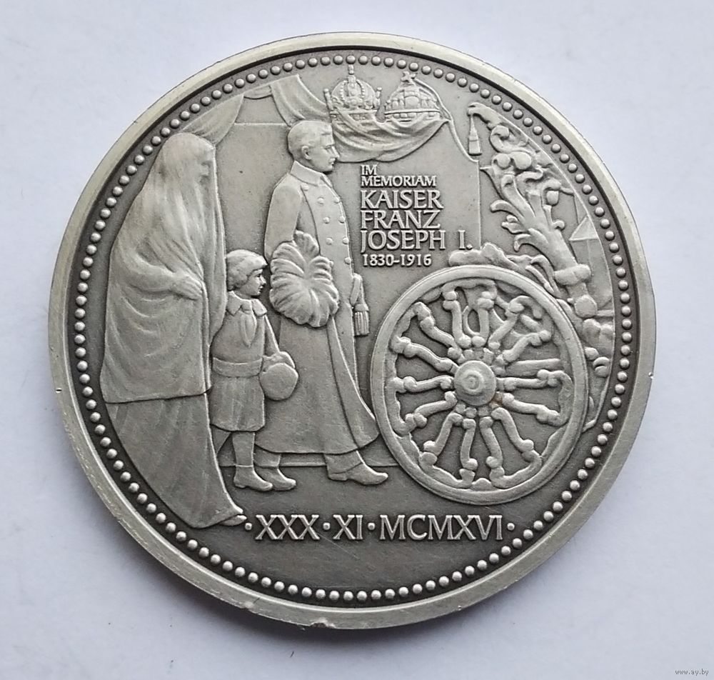 90 лет со дня смерти императора Франца Иосифа I. 1916-2006. Серебро 925 проба. Диаметр - 40 мм. Вес - 30 гр. Тираж - 1000 шт. Отчеканена на монетном дворе Münze Österreich. Австрия. Оригинал. Оплата на карту Беларусбанка.