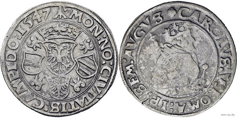 Редчайшие 1\2 талера райхсштадт Кемптен 1547 год Карл VI