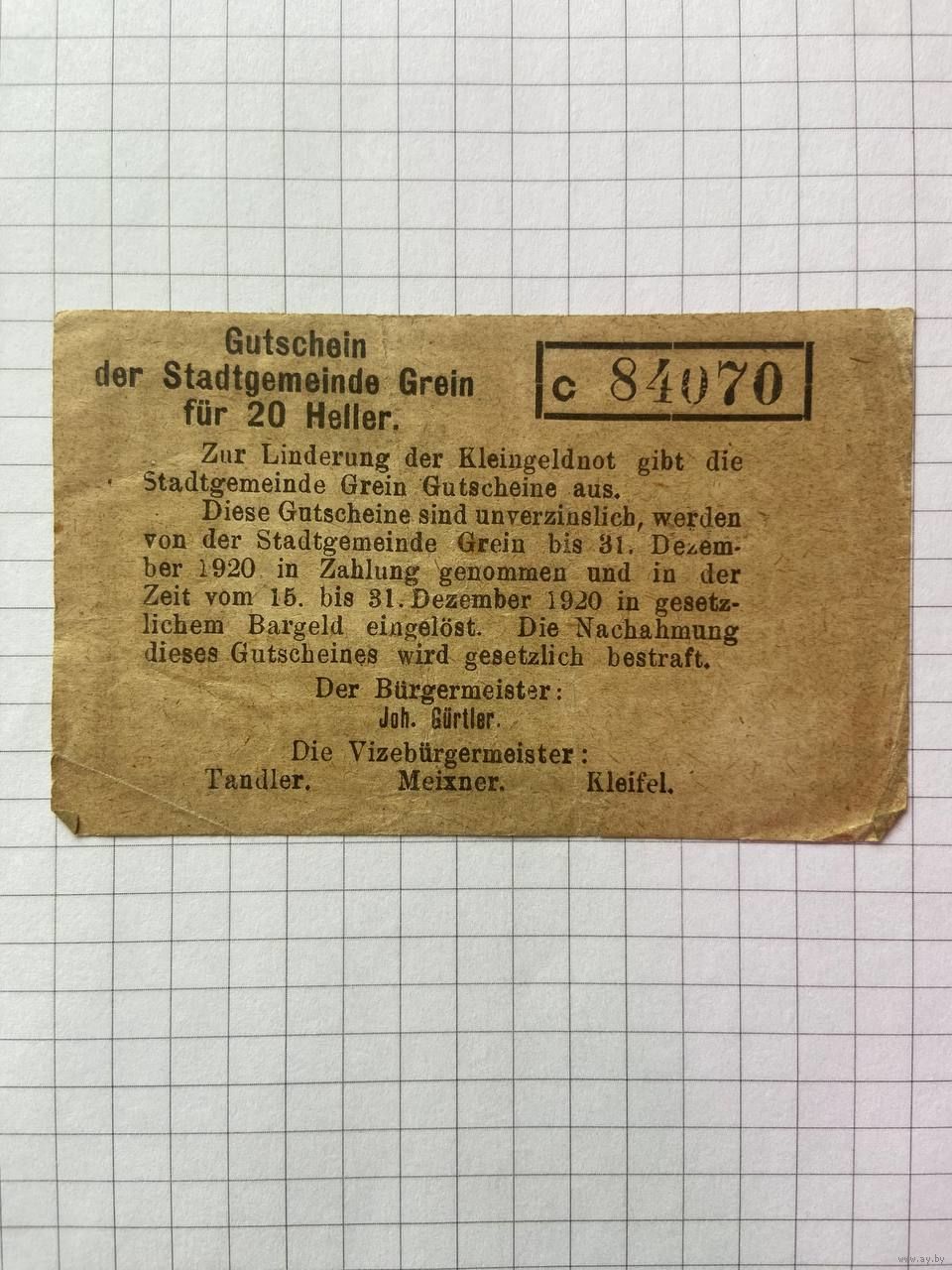 Австрия нотгельд 20 Грейн - 1201