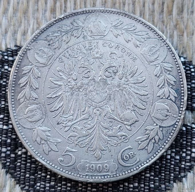 Австро-Венгрия 5 крон 1909 года. Франц Иосиф I. Орел. Серебро! Сторгуй за свою цену, предложи обмен! Y-200