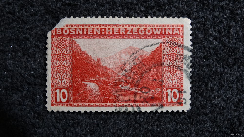 Представленная на изображении почтовая марка является частью серии стандартных марок Боснии и Герцеговины, выпущенной в 1910 году во времена австро-венгерского управления.