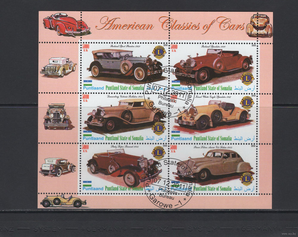 Авто Сомали 2010 Ретро автомобили США Фил.гашение