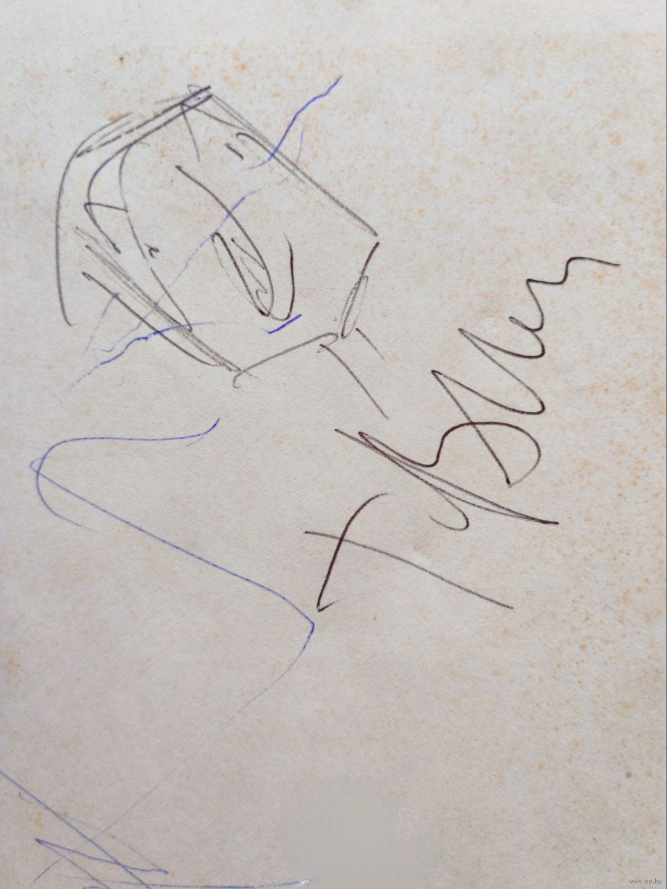 Автограф, который Георгий Михайлович дал моим родителям в Крыму в конце 1980-х. Они отдыхали в Ялте и случайно встретили артиста. С собой у них была книга Николая Носова "Незнайка в Солнечном городе" и на развороте этой книги Георгий Михайлович нарисовал свой автопортрет.