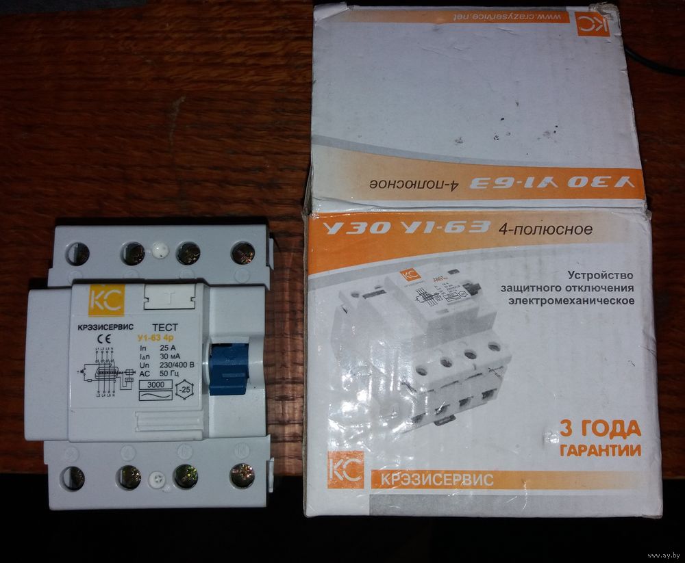 У1-63 4р 25А 30мА 230-400в 50Гц 4-полюса КС в коробке новый