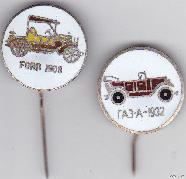 Автомобили: Ford (1908) и ГАЗ-А (1932).