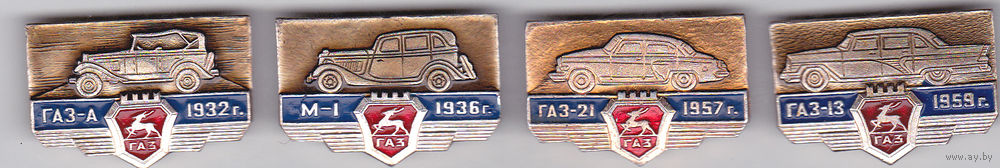 Автомобили: ГАЗ-А (1932), М-1 (1936), ГАЗ-21 (1957), ГАЗ-13 (1959).