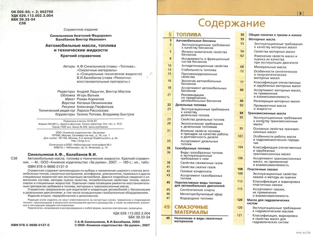 Справочник предназначен для водителей и владельцев автомобилей с бензиновыми и дизельными двигателями, в том числе оснащенными газобаллонным оборудованием.