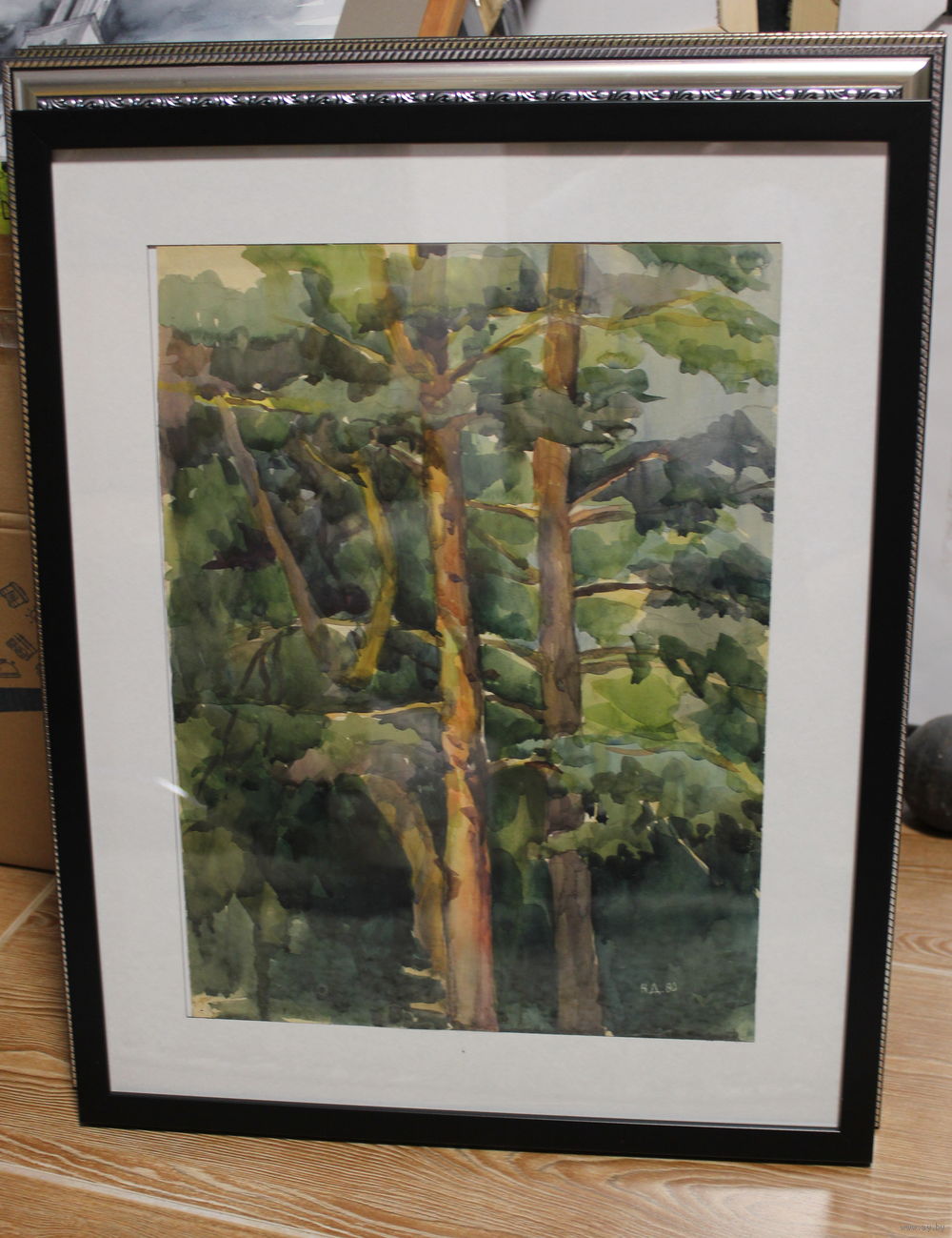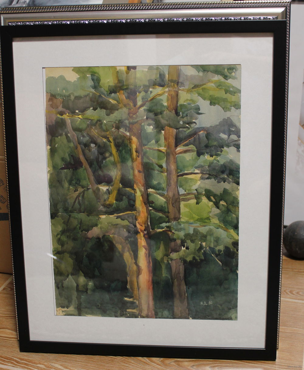 Авторская работа Драненко Н.А. 1980, акварель "Сосновый лес" размер по раме 40Х50, плотная бумага, паспарту, оформлена в раму, подпись автора на лицевой стороне