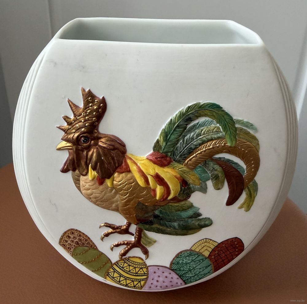 Авторская фарфоровая ваза Kaiser Germany известный дизайнер M.Frey. Ручная роспись, фактурный Пасхальный сюжет. Размеры:17/17 см, состояние идеальное.
