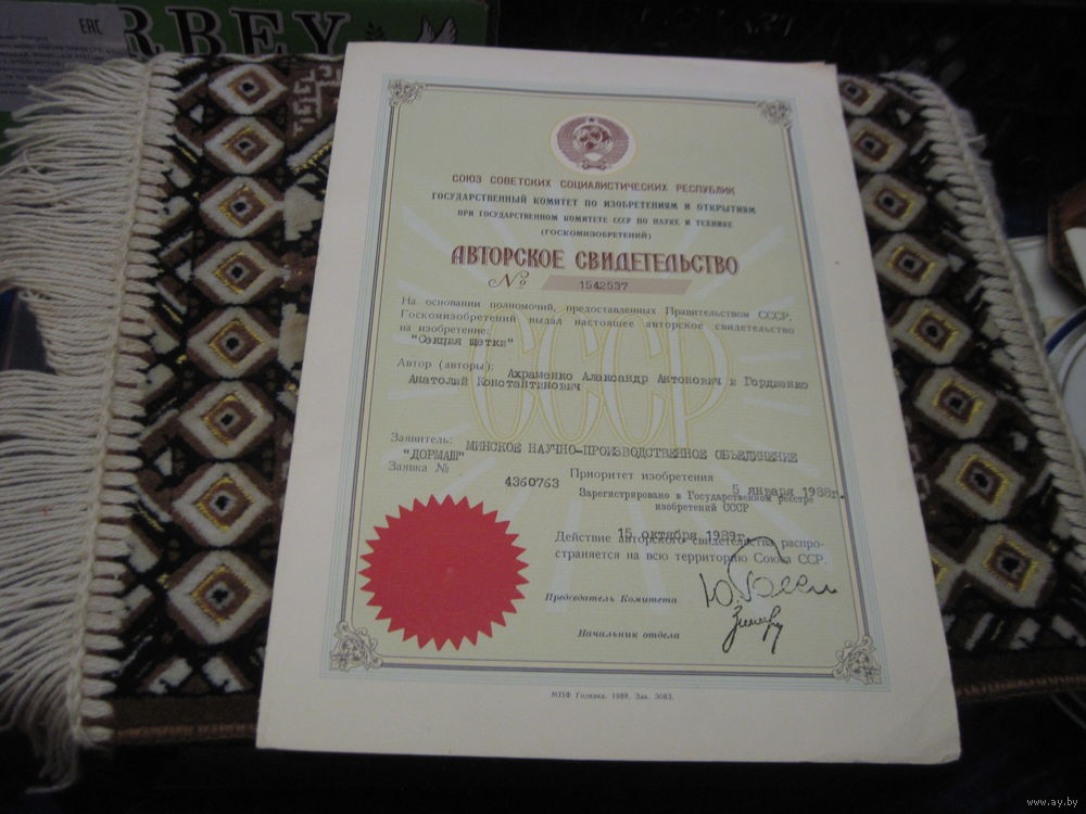 Авторское свидетельство номер 1542537 1989 г. С рубля!