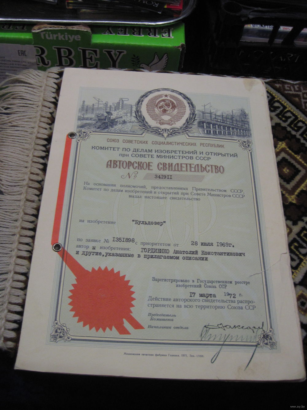 Авторское свидетельство номер 341911 1972 г. С рубля!
