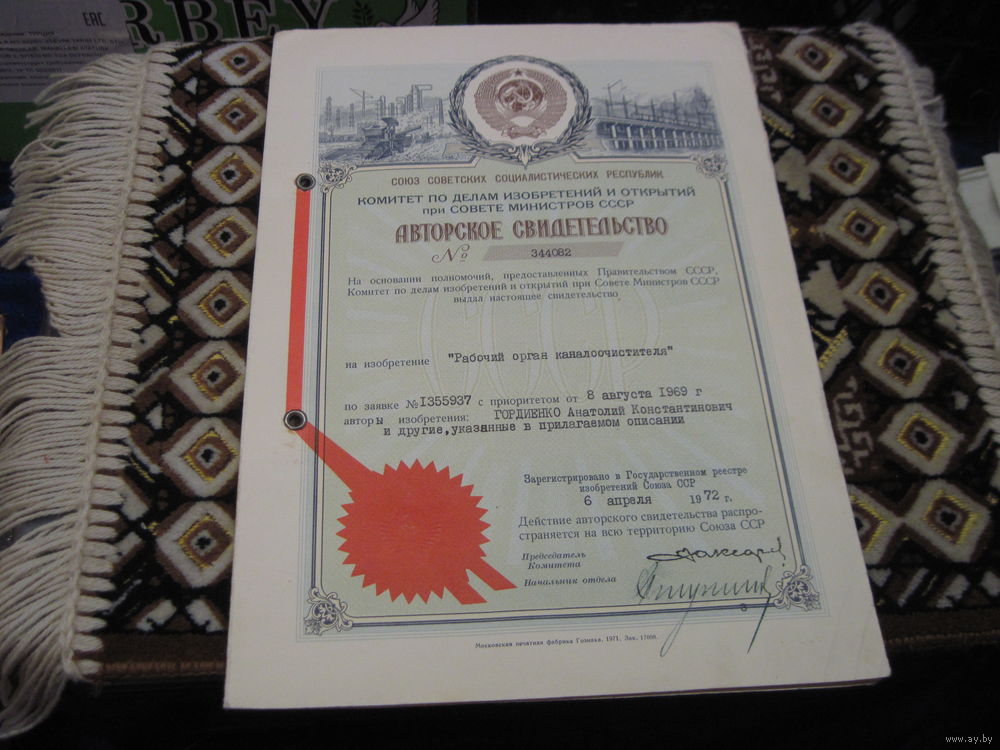Авторское свидетельство номер 344082 1972 г. С рубля!