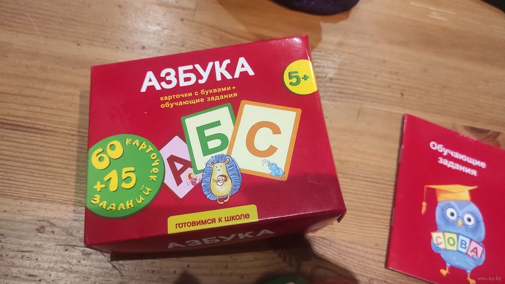 Азбука 5+. 60 карточек + 15 заданий в коробочке. Готовимся к школе. Размер коробки 12*10 см. Новые, не пользовались.