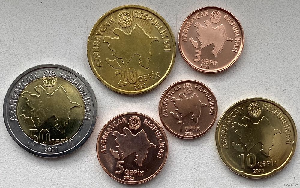 Азербайджан 1, 3, 5, 10, 20, 50 гяпиков 2021 - 2023 гг. Набор 6 шт.