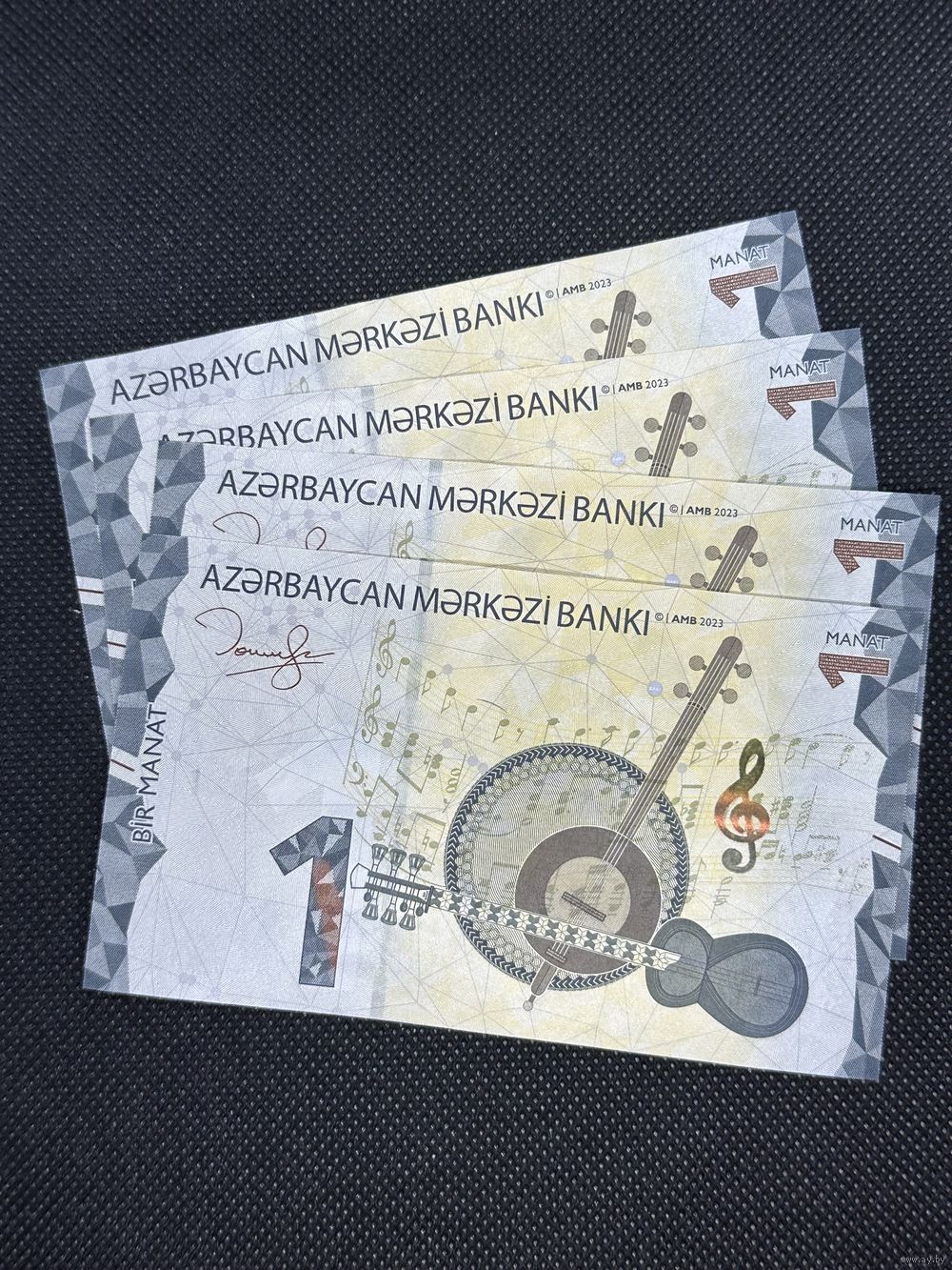 Азербайджан 1 манат 2023 год, 4 шт. Номера по порядку. UNC