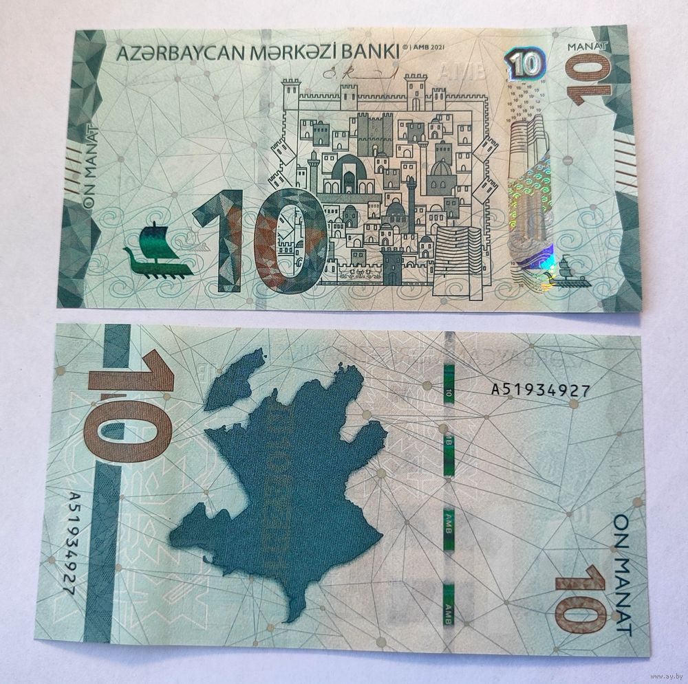 Азербайджан, 10 манат 2021 г, P-W40 (A, картина старого города, карта), UNC