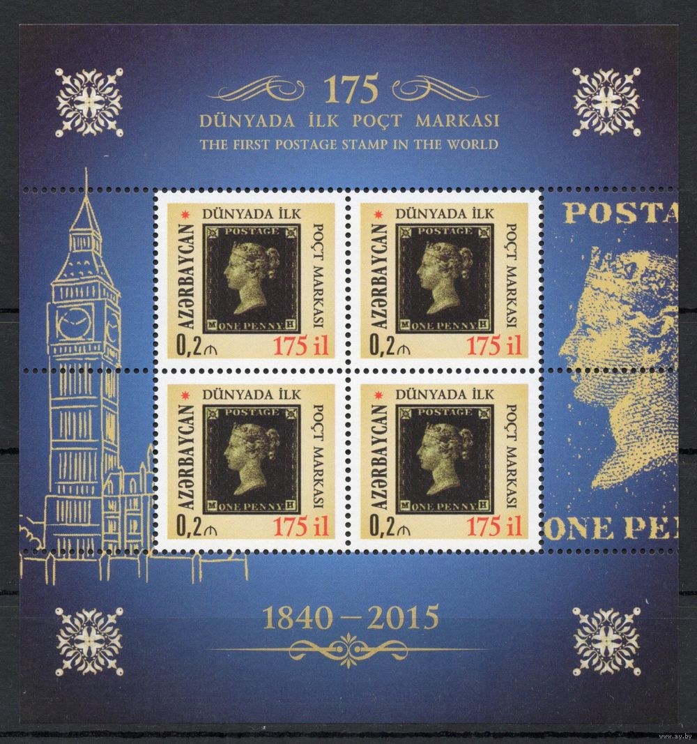 Азербайджан 2015. Черный пенни 175 лет, марка на марке блок (569)