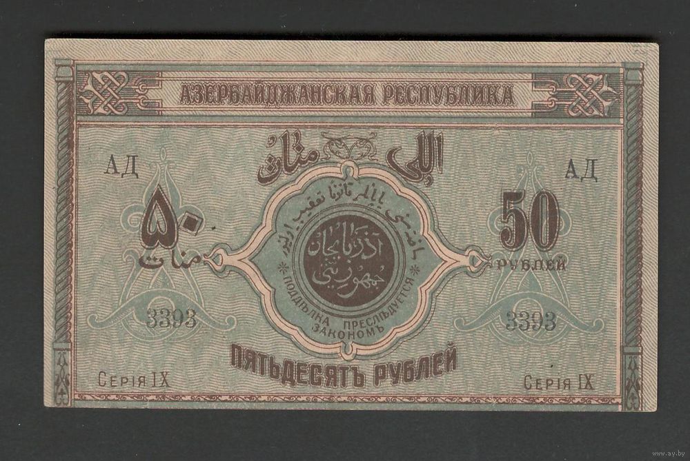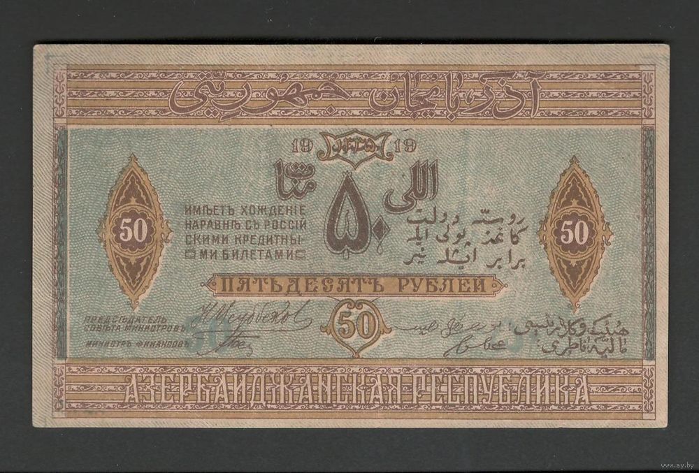 Азербайджан 50 рублей 1919 года. Тип P-2. Состояние aUNC