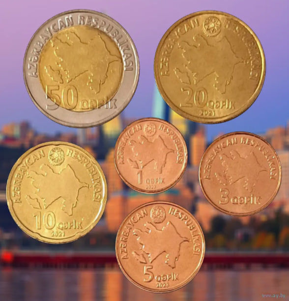 Азербайджан набор монет 1, 3, 5, 10, 20, 50 гипяк, UNC. Музыкальный инструмент. Архитектура. Спиральная лестница. Нефтяные вышки. Герб - звезда, пальма, тростник. Сторгуй за свою цену, предложи обмен!