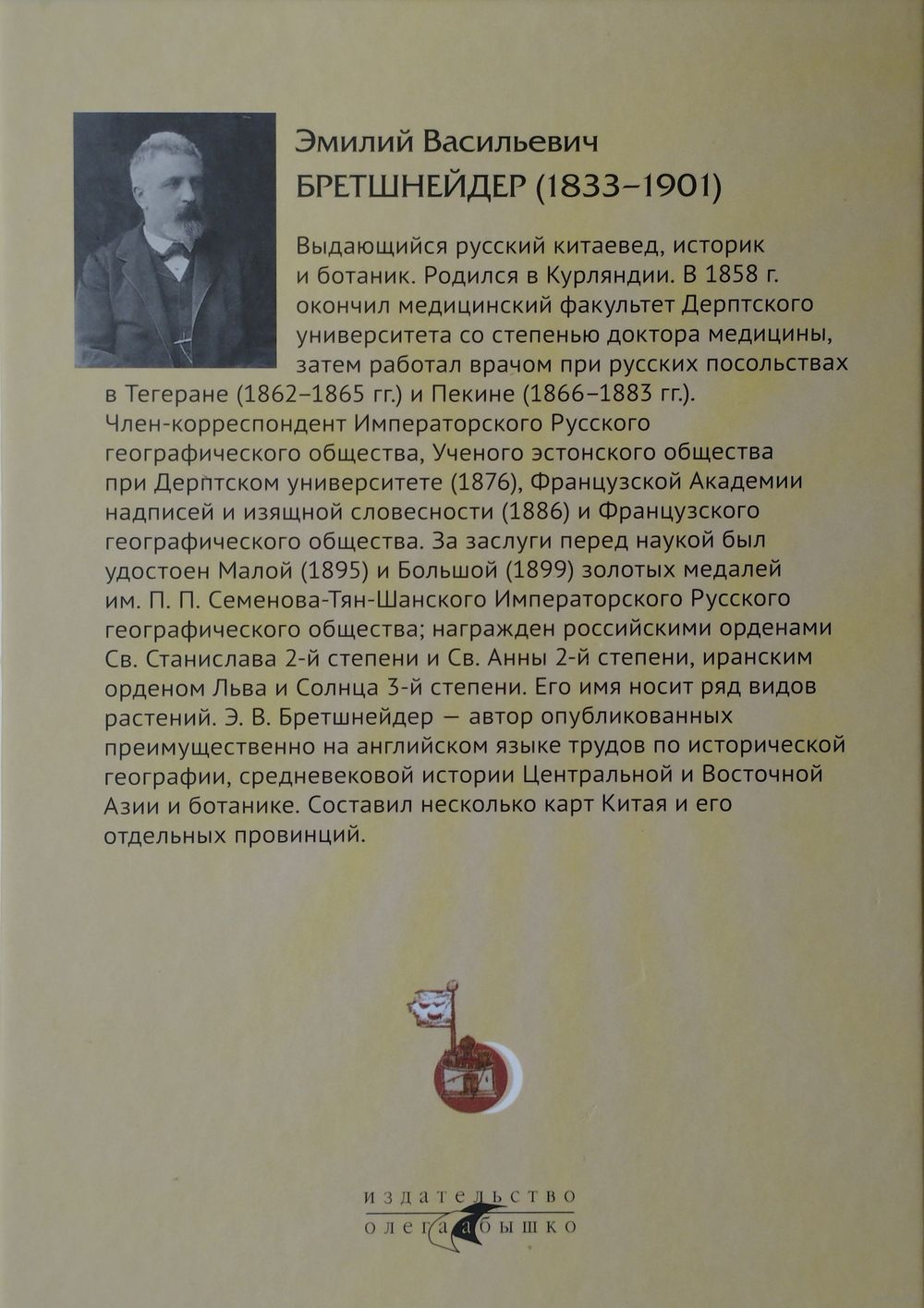 Большой формат. Тираж 300 экз.560 стр. Фундаментальный труд выдающегося русского историка, историографа, источниковеда, ботаника, синолога, географа и путешественника Эмилия Васильевича Бретшнейдера (1833-1901) посвящен истории и географии Центральной Азии и Восточного Туркестана в эпоху средневековья. Эта книга - замечательный памятник отечественного востоковедения.