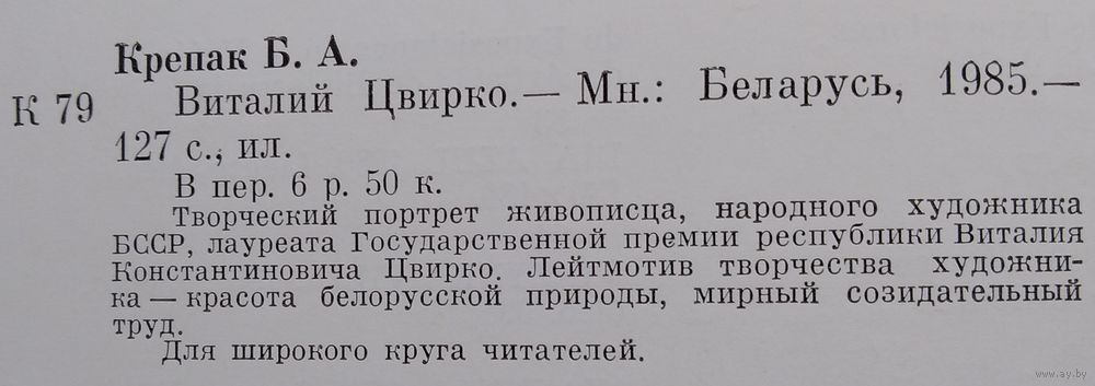 Б.А.Крепак. Виталий Цвирко. Живопись: Альбом. Мн. : Беларусь, 1985 г. 126 с. Твердый переплет. Суперобложка.