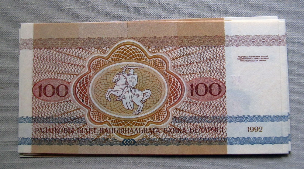 Б01-0346 100 Рублей Беларусь 1992 Серия АЯ 7 купюр из одной пачки Номера подряд