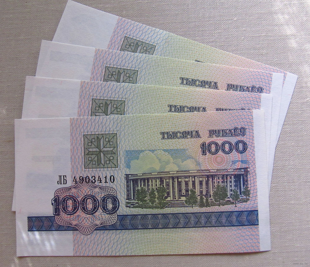 Б01-0387 1000 Рублей Беларусь 1998 Серия ЛБ 4 купюры из одной пачки Номера подряд