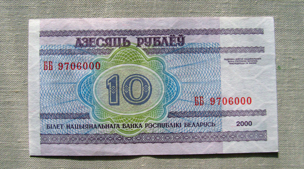 Б03-0503 10 Рублей Беларусь 2000 Серия ББ 9706000 Красивый номер