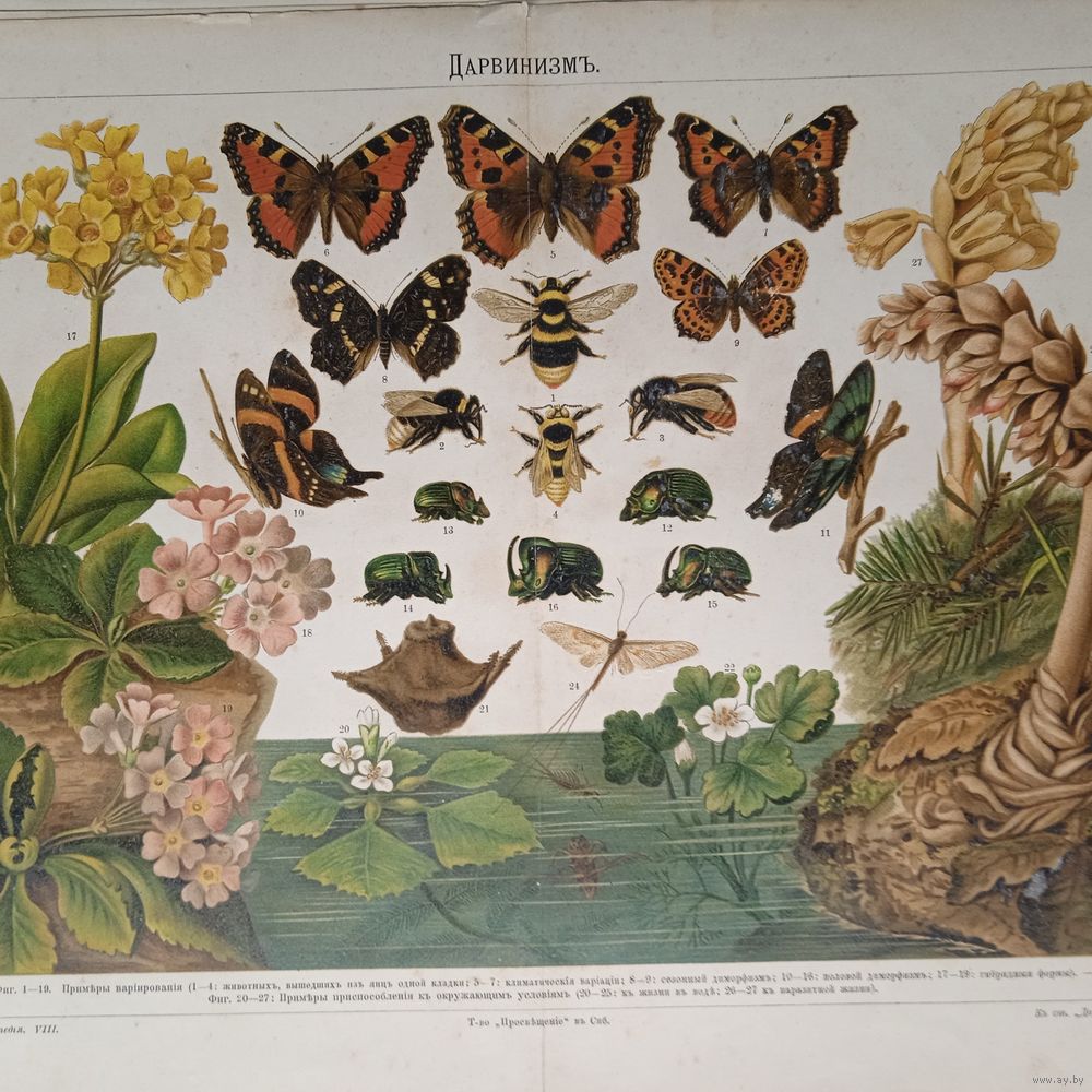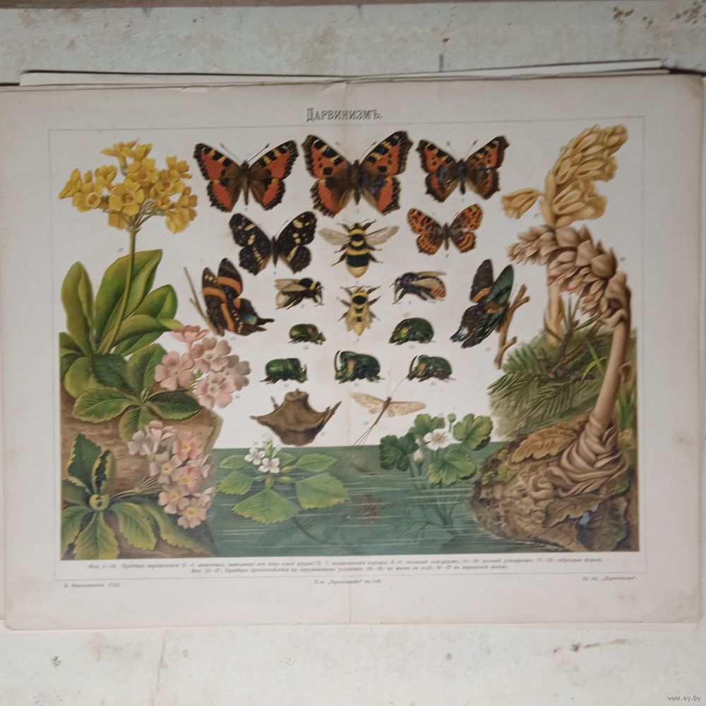 БАБОЧКИ...ДАРВИНИЗМЪ. Хромолитография 1900г. Спб. 31х24см.