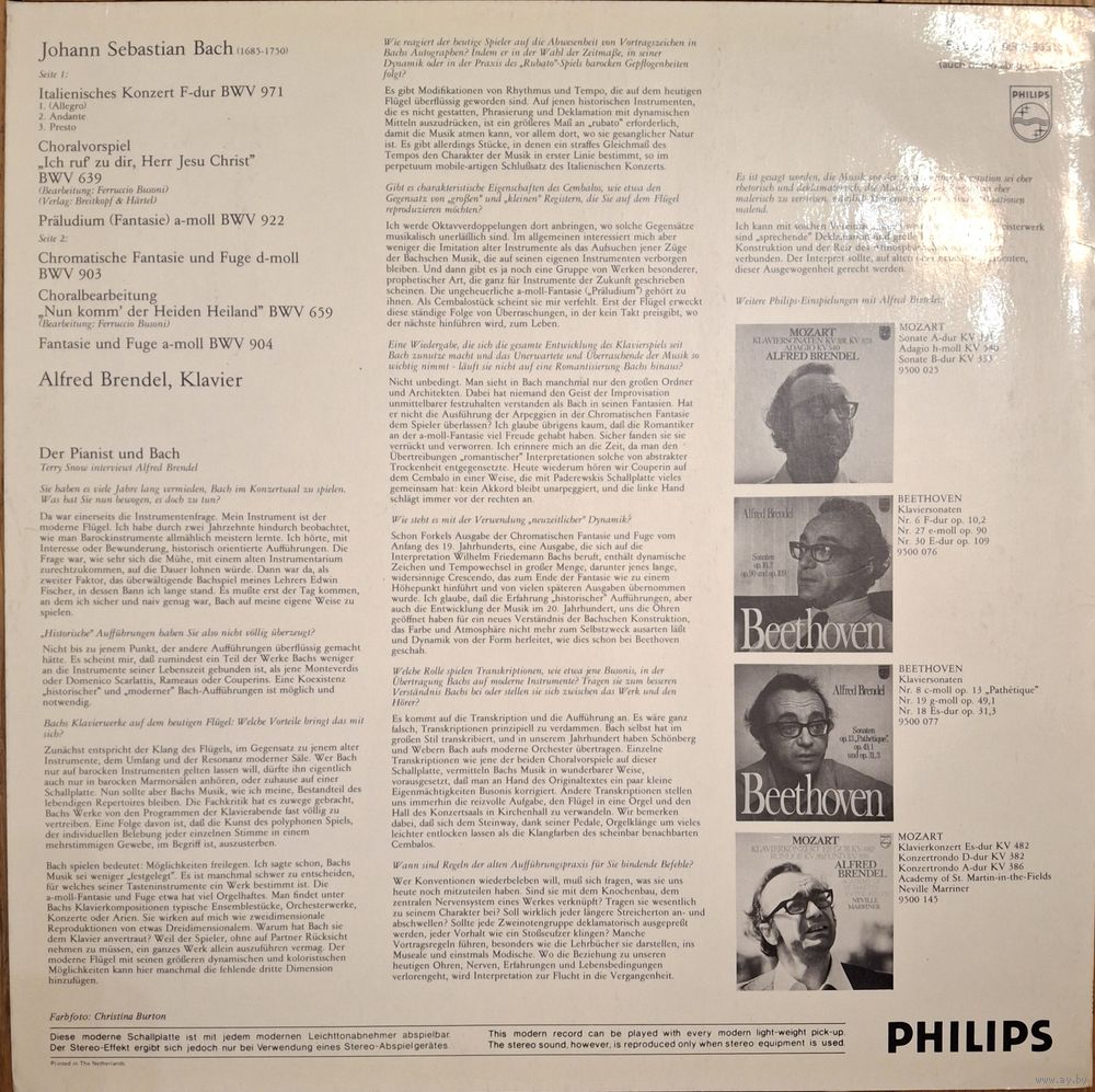 Bach, Alfred Brendel – Italian Concerto BWV 971 / Chromatic Fantasy And Fugue BWV 903