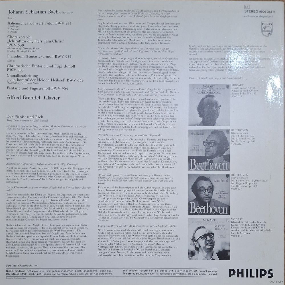 Bach - Alfred Brendel – Italienisches Konzert BWV 971 / Chromatische Fantasie Und Fuge BWV 903 / Fantasie Und Fuge a-moll BWV 904 / Praludium (Fantasie) a-moll BWV 922 / Zwei Choralvorspiele BWV 639 & 659