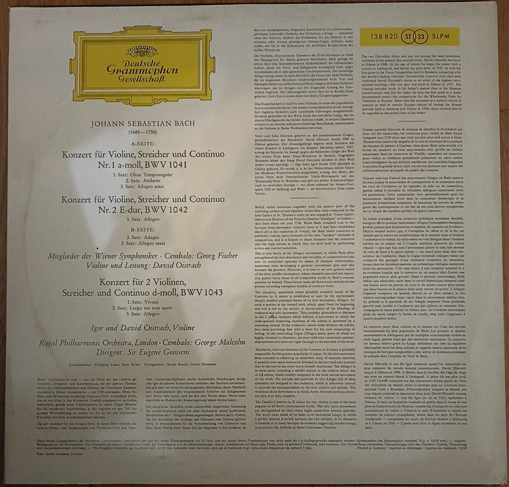 Bach, David Oistrach, Igor Oistrach – Violinkonzerte In A-Moll Und E-Dur / Konzert Fur Zwei Violinen In D-Moll