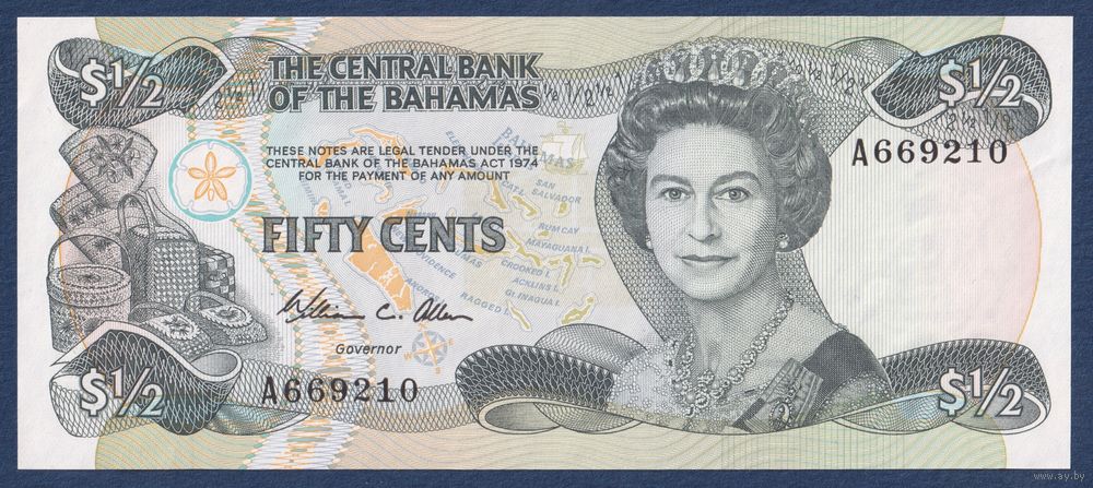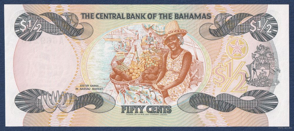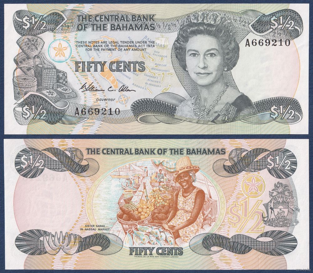 Багамские острова (Багамы), 50 центов 1984 г, P-42 (A, королева Елизавета II, ремесленница Сара Джонсон), UNC