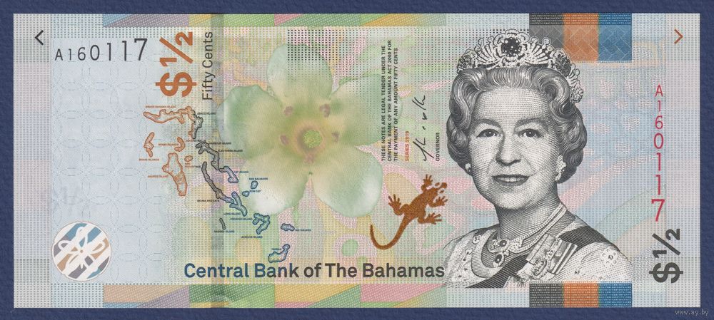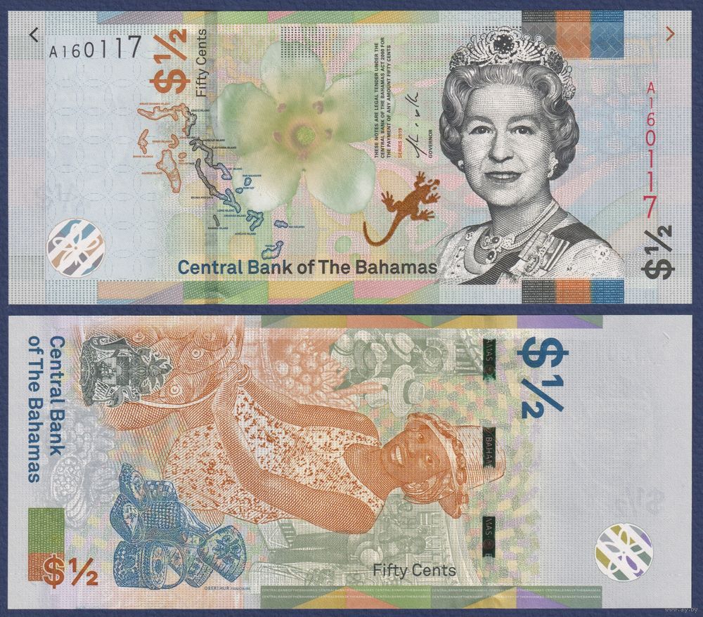 Багамские острова (Багамы), 50 центов 2019 г, P-WA77 (A, королева Елизавета II, UNC
