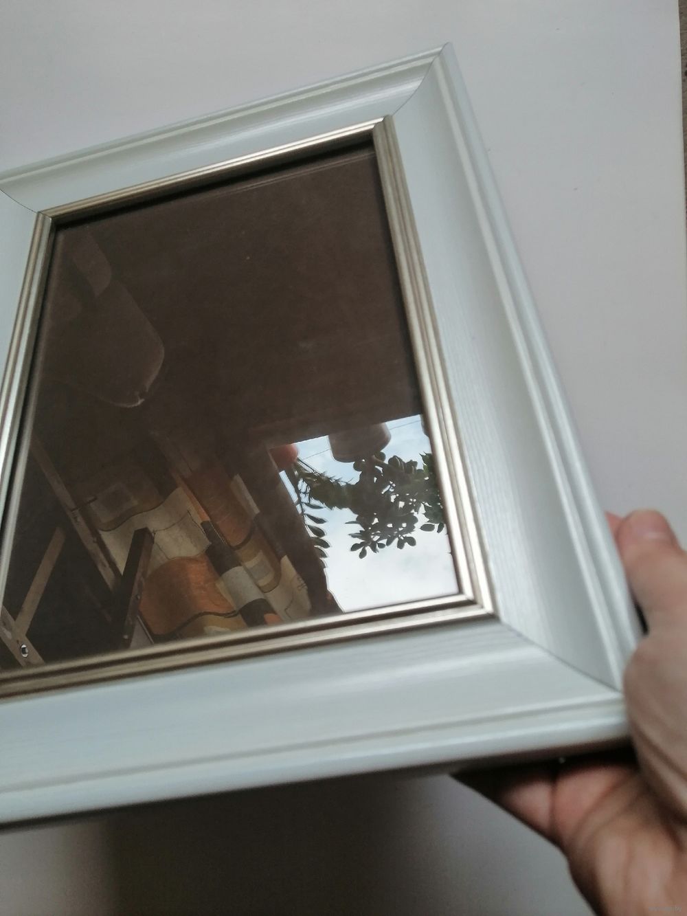 Багетная рама со стеклом/пластик, перламутровый белый