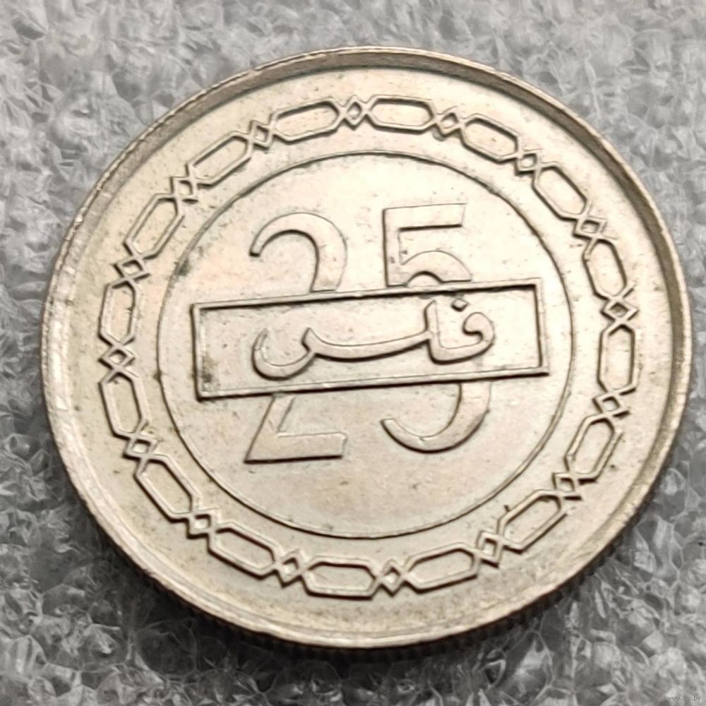 Номер  KM # 18  Страна  Бахрейн  Период  Королевство Бахрейн (1965 - 2022)  Правитель  Хамад / Иса  Валюта  Бахрейнский динар  Вид чекана  Регулярный чекан  Номинал  25 филсов  Год  1992 - 2000  Гурт  Рубчатый  Форма  Круг  Отношение авс/рев  Медальное (0°)  Материал  Медно-никелевый сплав  Вес (g)  3,5  Диаметр (mm)  20  Толщина (mm)  1,5