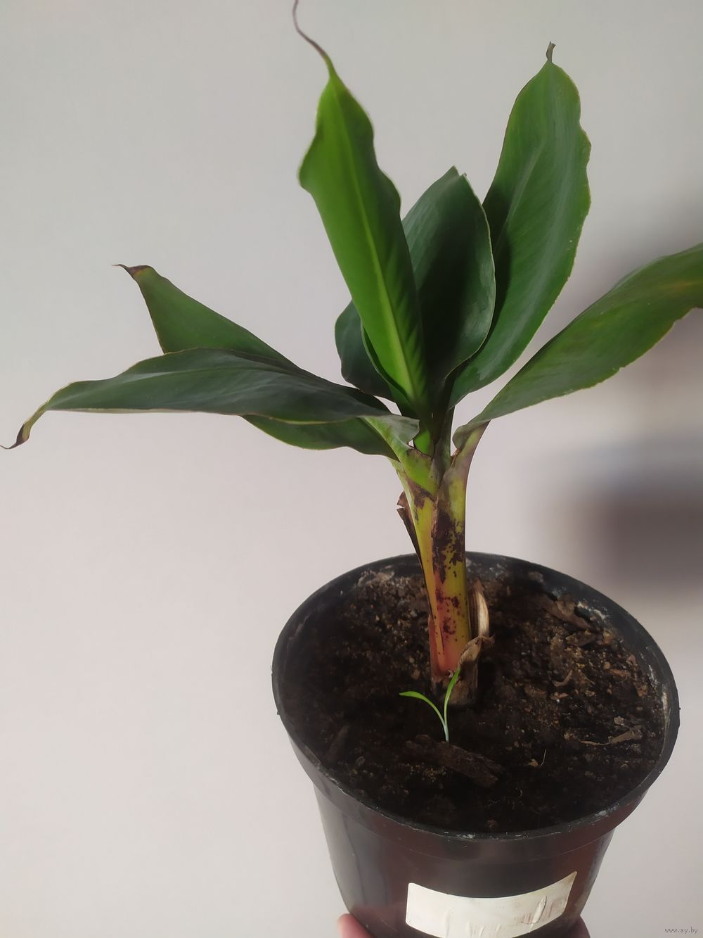 Этот сорт банана - один из самых компактных и красивых. Размер может достигать до 1,5м, размах листьев банана при этом до 50см. Яркие бархатные банановые листья Кавендиша имеют живописный рисунок из темных пятен, на подобии хищной расцветки. Плоды 9-12см с ананасным привкусом, могут вызревать в квартирных условиях и являются съедобными.