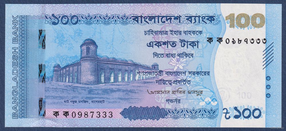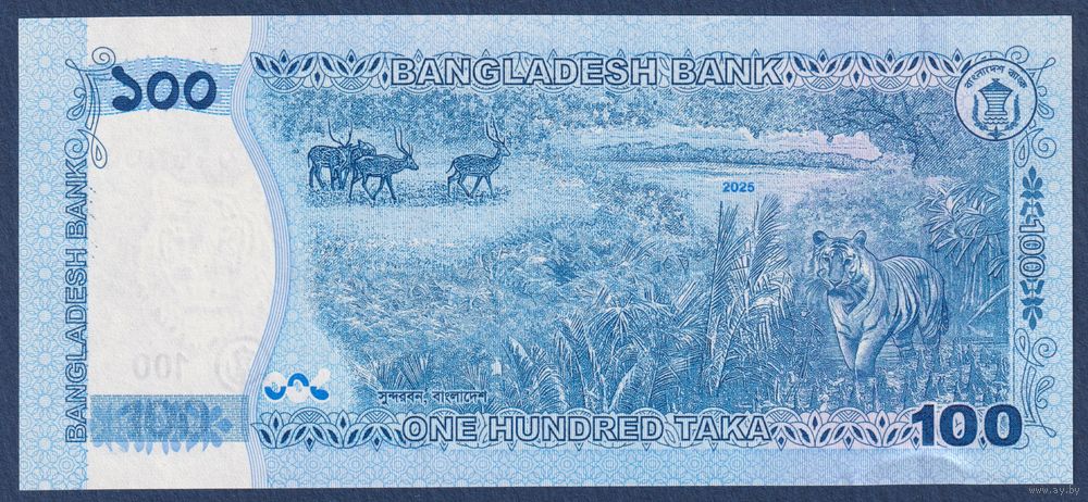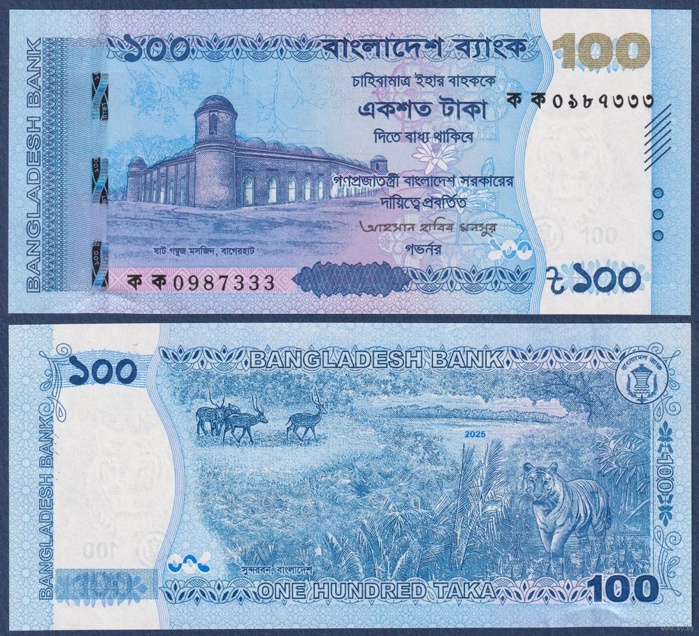 Бангладеш, 100 така 2025 г., P-W79 (мечеть в Багерхате, водяная лилия, бенгальский тигр), UNC