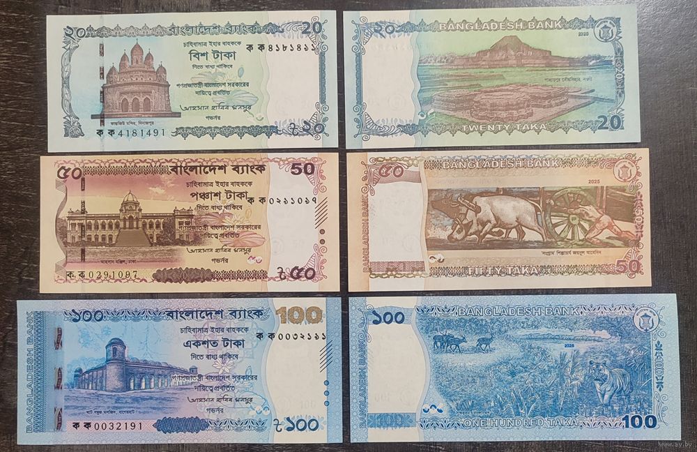 Бангладеш 20, 50, и 100 така 2025 г. (Комплект 3 банкноты).
