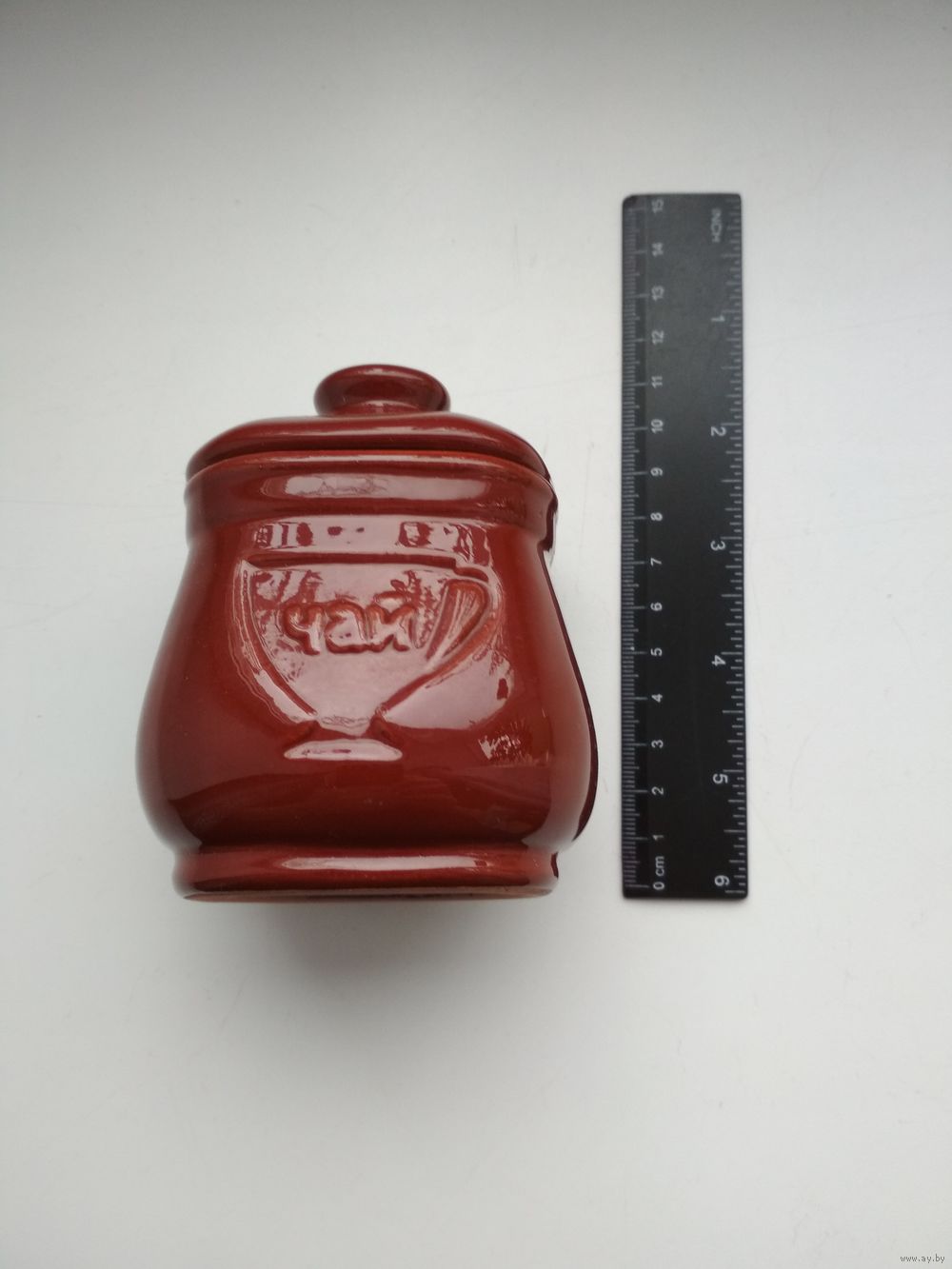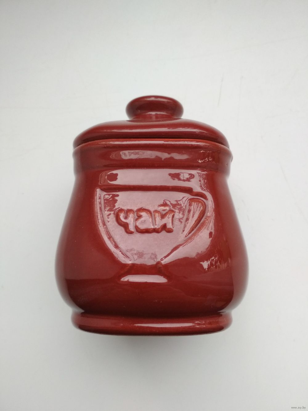 Новая керамическая банка для чая (Чайница), изготовлена в Радошковичах, цвет коричневый, имеется надпись «ЧАЙ», объем 250 мл.